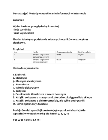 Temat zajęć: Metody wyszukiwanie informacji w Internecie Zadanie