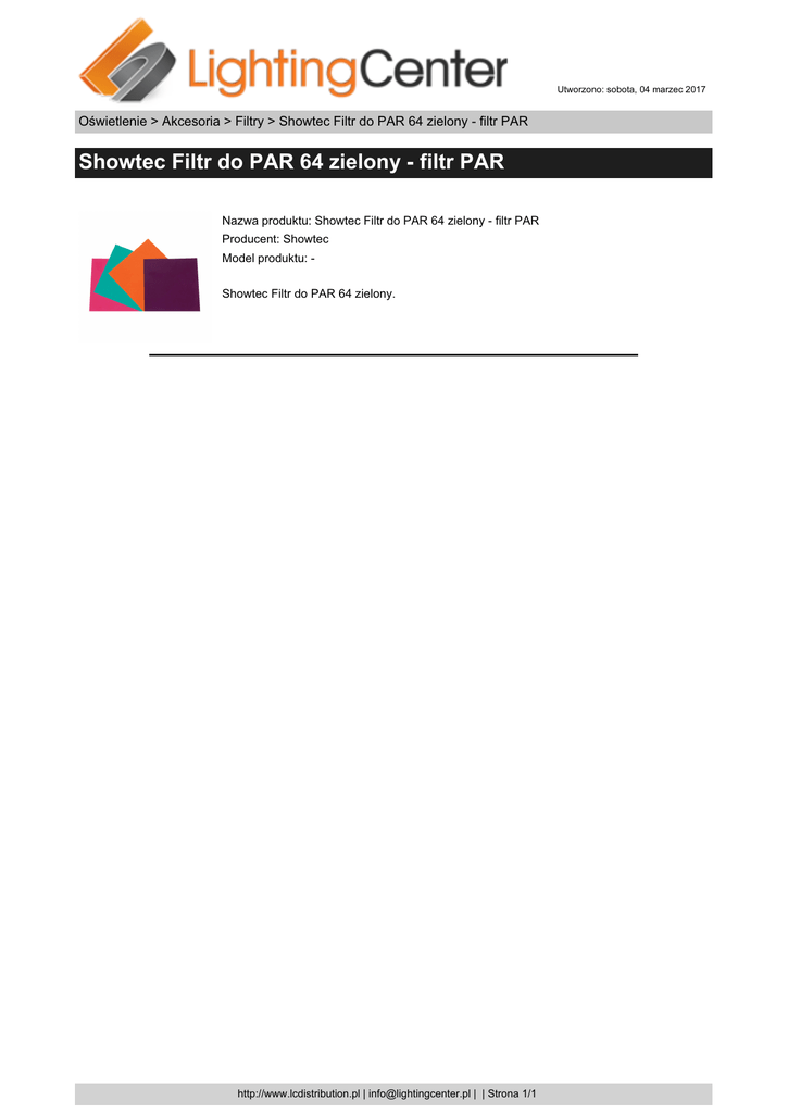 Utworzono: sobota, 04 marzec 2017 Oświetlenie > Akcesoria > Filtry > Showtec Filtr do PAR 64 zielony - filtr PAR Showtec Filtr do PAR 64 zielony - filtr PAR Nazwa produktu: Showtec Filtr do PAR 64 zielony - filtr PAR Producent: Showtec Model produktu: Showtec Filtr do PAR 64 zielony. http://www.lcdistribution.pl | [email protected] | | Strona 1/1