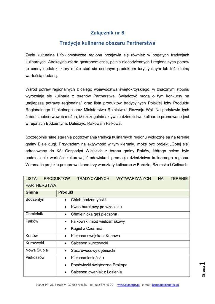 Załącznik nr 6 Tradycje kulinarne obszaru Partnerstwa