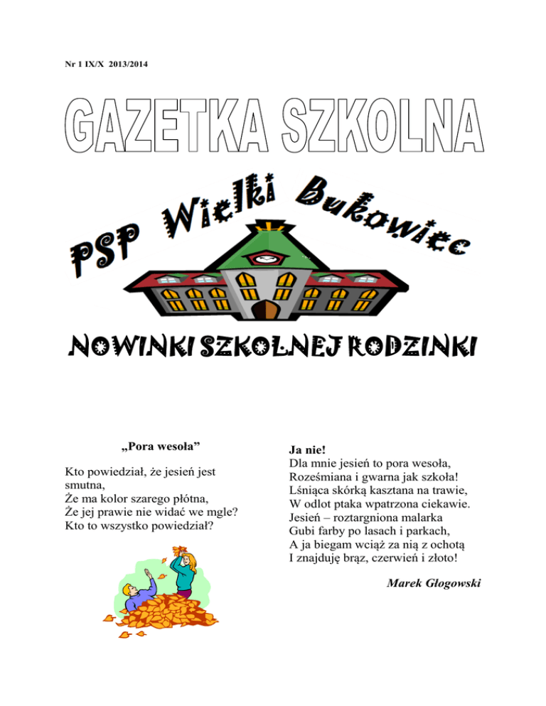 Gazetka Szkolna nr 1 - Szkoła Podstawowa Wielki Bukowiec