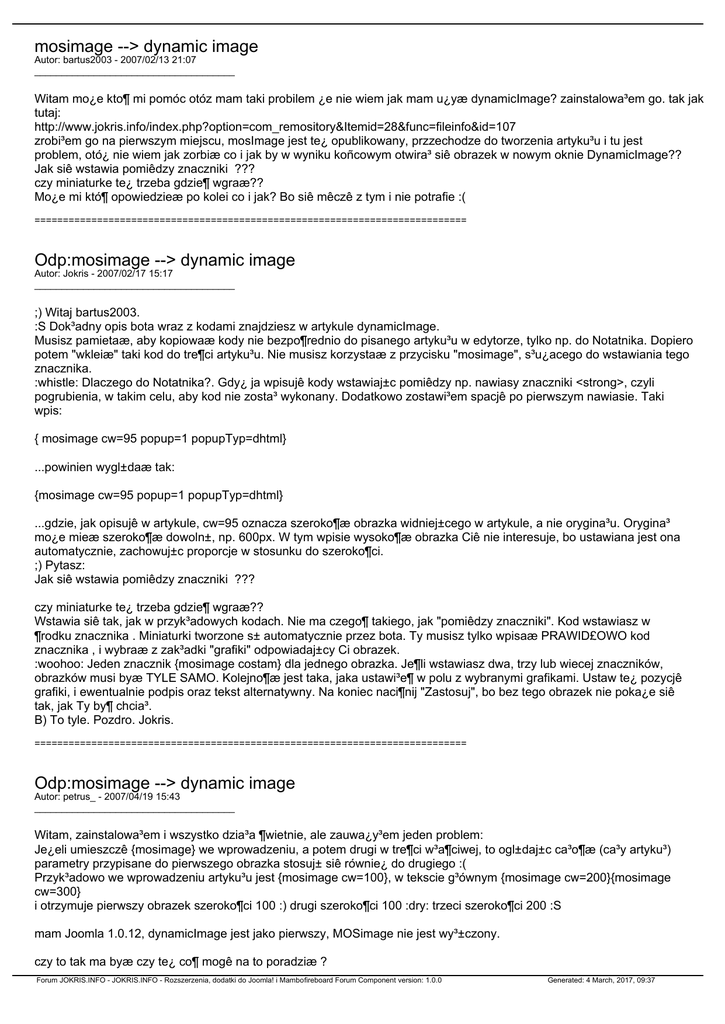 Forum JOKRIS.INFO - JOKRIS.INFO - Rozszerzenia, dodatki do Joomla! i Mambofireboard Forum Component version: 1.0.0