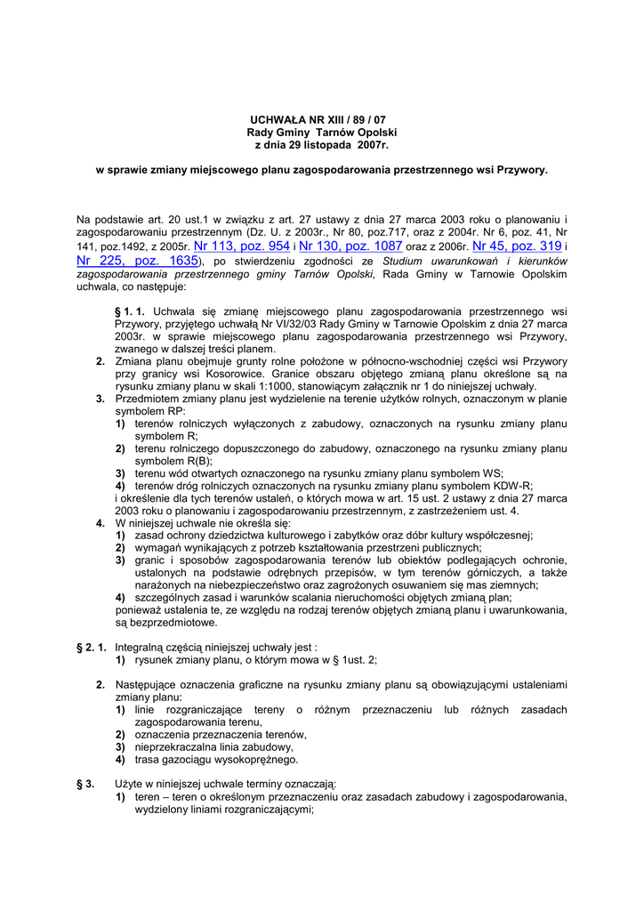 Uchwała Nr XIII-89-07 zmiany miejscowego planu