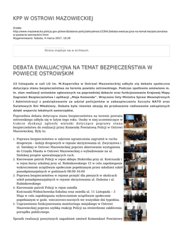 KPP W OSTROWI MAZOWIECKIEJ DEBATA EWALUACYJNA NA