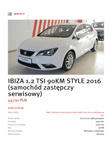 IBIZA 1.2 TSI 90KM STYLE 2016