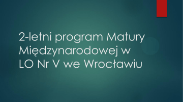 2-letni program Matury Międzynarodowej w LO Nr V we