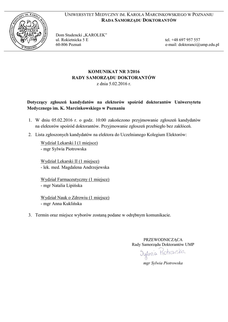 Komunikat nr 3/2016 - Uniwersytet Medyczny im. Karola
