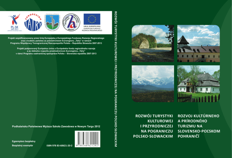 Projekt podporovaný Európskou úniou z Európskeho fondu regionálneho rozvoja a zo śtátneho rozpočtu prostredníctvom Euroregiónu „Tatry” v rámci Programu cezhraničnej spolupráce Poľsko – Slovenská republika 2007-2013 Podhalańska Państwowa Wyższa Szkoła Zawodowa w Nowym Targu 2012 Egzemplarz bezpłatny Bezplatný exemplár ISBN 978 83-60621-20-2 9 788360 621202 ROZWÓJ TURYSTYKI KULTUROWEJ I PRZYRODNICZEJ NA POGRANICZU POLSKO SŁOWACKIM Projekt współfinansowany przez Unię Europejską z Europejskiego Funduszu Rozwoju Regionalnego oraz z budżetu państwa za pośrednictwem Euroregionu „Tatry” w ramach Programu Współpracy Transgranicznej Rzeczpospolita Polska – Republika Słowacka 2007-2013 ROZWÓJ TURYSTYKI KULTUROWEJ I PRZYRODNICZEJ NA POGRANICZU POLSKO SŁOWACKIM ROZVOJ KULTÚRNEHO A PRÍRODNÉHO TURIZMU NA SLOVENSKO POĽSKOM POHRANIČÍ Rozwój turystyki kulturowej i przyrodniczej na pograniczu polsko-słowackim Rozvoj kultúrneho a prírodného turizmu na slovensko-poľskom pohraničí Rozwój turystyki kulturowej i przyrodniczej na pograniczu polsko-słowackim Rozvoj kultúrneho a prírodného turizmu na slovensko-poľskom pohraničí N OW Y TA R G 2 0 1 2 Publikacja współfinansowana przez Unię Europejską z Europejskiego Funduszu Rozwoju Regionalnego oraz z budżetu państwa za pośrednictwem Euroregionu „Tatry” w ramach Programu Współpracy Transgranicznej Rzeczpospolita Polska – Republika Słowacka 2007-2013 Publikácia podporovaná Európskou úniou z Európskeho fondu regionálneho rozvoja a zo štátneho rozpočtu prostredníctvom Euroregiónu „Tatry” v rámci Programu cezhraničnej spolupráce Poľsko – Slovenská republika 2007-2013 Wyłączną odpowiedzialność za treść niniejszej publikacji ponosi Podhalańska Państwowa Wyższa Szkoła Zawodowa w Nowym Targu i w żadnym razie nie może ona być utożsamiana z oficjalnym stanowiskiem Unii Europejskiej ani Euroregionu „Tatry” Výlučnú zodpovednosť za obsah publikácie znáša Podhalanská štátna odborná vysoká škola v Nowom Targu a žiadnom prípade nemôže byť stotožňovaná s oficiálnym stanoviskom Európskej únie a Euroregiónu „Tatry“ Recenzenci artykułów w j. polskim: Prof. dr hab. Włodzimierz Kurek Dr hab inż. arch. Wojciech Kosiński Redakcja naukowa: Piotr Sadowski Redakcja i korekta techniczna: Małgorzata Muszyńska-Kurnik, Justyna Kuzon Tłumaczenie na j. słowacki: Magdalena Gromadzka Tłumaczenie na j. angielski: Łukasz Abramek, Agnieszka Lasek, Paweł Poznański, autorzy © Podhalańska Państwowa Wyższa Szkoła Zawodowa w Nowym Targu, 2012 ISBN 978-83-60621-20-2 Podhalańska Państwowa Wyższa Szkoła Zawodowa w Nowym Targu Kokoszków 71, 34-400 Nowy Targ www.ppwsz.edu.pl Przygotowanie publikacji do druku Katarzyna Słabosz-Palacz, Jan Palacz Faktoria Wyrazu, sp. z o.o.; tel. 609-512-609; www.faktoria-wyrazu.pl Druk: Drukarnia GS, Kraków; tel. (12) 260-15-01 Fotografie na okładce: Rezerwat Przełom Białki, Tatry – widok znad Łapszanki, Dwór w Łopusznej (fot. Piotr Sadowski); Panorama Tatr nad zamkiem w Kieżmarku (fot. Przemysław Zachura) Spis treści Robert Faracik Granice polityczne a turystyka – wzajemne relacje na wybranych przykładach z Europy .........11 Dariusz Dyląg O konwencję turystyczną ze Słowacją ........................................................................................ 19 Marta Machurková Rynek wewnętrzny Słowacji: usługi i współpraca ...................................................................... 27 Robert Pawlusiński Turystyka w miastach przygranicznych Karpat Polskich w świetle współczesnych kierunków rozwoju ...................................................................................................................... 31 Krzysztof Szpara Działania samorządów lokalnych i organizacji pozarządowych w zakresie rozwoju i promocji turystyki przyrodniczej i kulturowej przygranicznych obszarów województwa podkarpackiego .................................................................................................... 39 Jan Golonka, Marek Doktor, Michał Krobicki, Krzysztof Miśkiewicz, Tomasz Bartuś, Renata Stadnik, Anna Waśkowska Transgraniczny geopark pieniński jako stymulator rozwoju regionu ......................................... 47 Margaréta Malatinová Potencjał przyrodniczy słowackiego Pienińskiego Parku Narodowego a ruch turystyczny ........................................................................................................................ 57 Krystyna Popko-Tomasiewicz Turystyka przyrodnicza na terenie Gorczańskiego Parku Narodowego – koncepcja, baza, przyszłość ........................................................................................................................... 61 Małgorzata Muszyńska-Kurnik Atrakcyjność rekreacyjno-turystyczna Gorczańskiego Parku Narodowego............................... 71 Pavol Majko Witajcie w słowackim Tatrzańskim Parku Narodowym, przestrzeganie regulaminu dla odwiedzających ...................................................................................................................... 79 Pavel Ballo Monitoring kolonii świstaka tatrzańskiego (Marmota marmota latirostris) na granicy polsko-słowackiej a kłusownictwo ............................................................................ 83 Adam Mroczka Wybrane aspekty atrakcyjności turystycznej Babiogórskiego Parku Narodowego w świetle badań ankietowych ...................................................................................................... 87 Jana Piteková Miasto Kieżmark a turystyka kulturowa – projekt Słowackie Miasta Królewskie .................... 93 6 Spis treści Erika Cintulová Turystyka kulturowa na Zamku Kieżmarskim .......................................................................... 101 Ewa Strauchmann Gorce i Gorczański Park Narodowy jako obszar zainteresowania turys