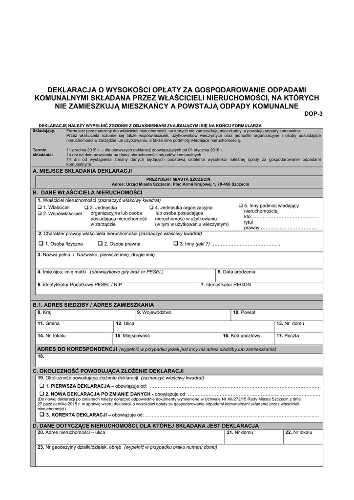 Deklaracja DOP-3 - e-URZĄD Miasta Szczecin