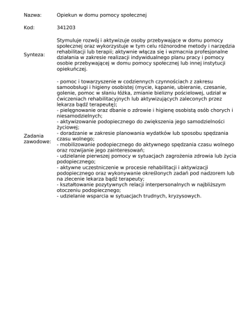Nazwa: Opiekun w domu pomocy społecznej Kod: 341203 Synteza