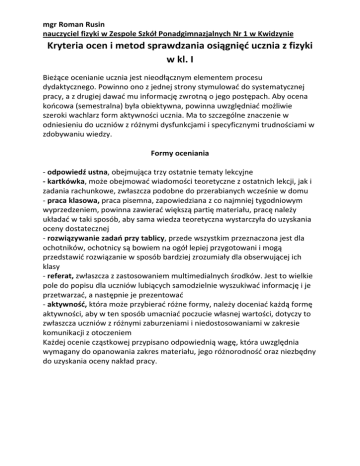 (Kryteria ocen i metod sprawdzania osi¹gnięć ucznia z fizyki w klx)