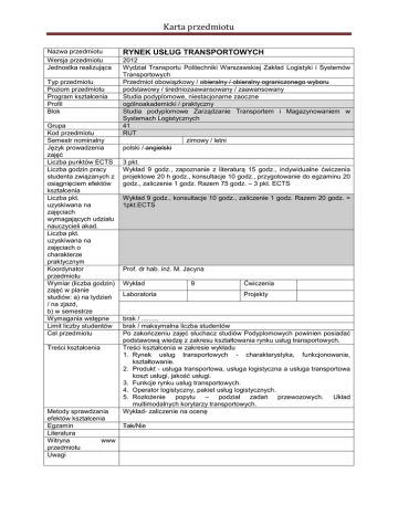 Rynek usług transportowych - Wydział Transportu Politechniki