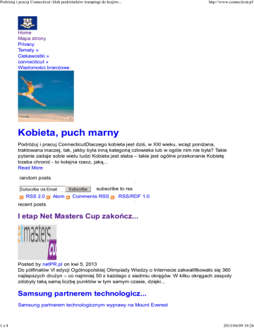 Podróżuj i pracuj Connecticut | klub podróżników trampingi do krajów... 1z4 http://www.connecticut.pl/ Home Mapa strony Privacy Tematy » Ciekawostki » connecticut » Wiadomości branżowe Kobieta, puch marny Podróżuj i pracuj ConnecticutDlaczego kobieta jest dziś, w XXI wieku, wciąż poniżana, traktowana inaczej, tak, jakby była inną kategorią człowieka lub w ogóle nim nie była? Takie pytanie zadaje sobie wielu ludzi Kobieta jest słaba – takie jest ogólne przekonanie Kobietę trzeba chronić - to kolejna rzecz, jaką... Read More random posts subscribe to rss RSS 2.0 Atom Comments RSS RSS/RDF 1.0 recent posts I etap Net Masters Cup zakończ... Posted by netPR.pl on kwi 5, 2013 Do półfinałów VI edycji Ogólnopolskiej Olimpiady Wiedzy o Internecie zakwalifikowało się 360 najlepszych drużyn – co najmniej 50 z każdego z siedmiu okręgów. W kilku okręgach zespoły zdobyły taką samą liczbę punktów w tym samym czasie, dzięki... Samsung partnerem technologicz... Samsung partnerem technologicznym wyprawy na Mount Everest 2013/04/09 18:26 Podróżuj i pracuj Connecticut | klub podróżników trampingi do krajów... 2z4 http://www.connecticut.pl/ Posted by netPR.pl on kwi 4, 2013 Monika Witkowska, podróżniczka i dziennikarka magazynów Voyage, National Geographic – Traveler oraz Gazety Wyborczej i Pulsu Biznesu, 4 kwietnia wyrusza na koleją wyprawę. Tym razem celem jej podróży jest najwyższy szczyt Ziemi – Mount Everest. Ultrabook... Jerzy Dudek o meczach z Ukrain... Jerzy Dudek o meczach z Ukrainą i San Marino Posted by netPR.pl on mar 27, 2013 Aż trudno uwierzyć, jak wiele mogą zmienić dwa mecze. Wprawdzie wygraliśmy z San Marino, ale nawet przy wyniku 10:0 nie udałoby się zapomnieć o bardzo słabym meczu z Ukrainą. Może się okazać, że właśnie punktów straconych w piątek zabraknie nam w... Czy aplikacja mobilna zmotywuj... Czy aplikacja mobilna zmotywuje do aktywności? Posted by netPR.pl on mar 19, 2013 Dziś na osobistego trenera stać każdego. Wystarczy smartfon, który podpowie użytkownikowi co robić, aby osiągnąć wyznaczony cel: 5, 10, a może nawet 15 kg w dół, lepsza kondycja, czy dobre samopoczucie? Zamknięty w poręcznym urządzeniu głos poinformuje... Ruszyła kolejna edycja Castrol... Ruszyła kolejna edycja Castrol EDGE Grand Prix Predictor Posted by netPR.pl on mar 14, 2013 Podobnie jak w ubiegłym roku, także w sezonie 2013 polscy miłośnicy Formuły 1 mogą brać udział w grze Castrol EDGE Grand Prix Predictor, typując wyniki poszczególnych wyścigów. Ekspertem polskiej edycji jest Cezary Gutowski, dziennikarz i znawca tematyki... 2330 drużyn zgłosiło się do Ne... Posted by netPR.pl on mar 13, 2013 Do VI edycji Ogólnopolskiej Olimpiady Wiedzy o Internecie Net Masters Cup swój udział zgłosiło aż 2330 zespołów, czyli 9320 osób. Już 18 marca uczestników czekają eliminacje on-line, po których poznamy drużyny, które dostaną się do półfinałów... Ukraine – Krutogorovskoye-7 We... 2013/04/09 18:26 Podróżuj i pracuj Connecticut | klub podróżników trampingi do krajów... 3z4 http://www.connecticut.pl/ Posted by netPR.pl on wrz 11, 2012 Kulczyk Oil Ventures, an international upstream oil and gas exploration and production company, is pleased to announce that the Krutogorovskoye-7 (“K-7”) well in Ukraine has commenced drilling. K-7 is operated by KUB-Gas, a subsidiary in which KOV has a 70%... popular posts Praca w USA (1) Czy nadal opłaca się wyjechać do USA do pracy? (1) recent comments abczdrowia: Im dłużej tutaj tym wieksze pragnienie wyjechania żeby co... mariusz foryza: Jestem osobą chętna do pracy w stanach zjednoczonych.z zai... recent from wypoczynek New Haven Podróżuj i pracuj ConnecticutNew Haven – miasto w północno-wschodniej części Stanów Zjednoczonych, nad Atlantykiem, w stanie Connecticut Miasto ma 123,6 tys mieszkańców, obszar metropolitalny 824,0 tys mieszkańców (dane z 2000) Miasto jest częścią wielkiego obszaru metropolitalnego miasta Nowy Jork liczącego 21,2... recent from Zakupy PopBox v8 – aplikacje internetowe na Twoim TV Podróżuj i pracuj ConnecticutW pierwszych dniach października firma Human Media wprowadzi do sprzedaży w Polsce nowy odtwarzacz multimedialny PopBox v8 Urządzenie miało swoją premierę na tegorocznych targach IFA w Berlinie, a za cały projekt odpowiada firma Syabas, producent znanych odtwarzaczy Popcorn Hour przeznaczonych dla... recent from Ciekawostki Kobieta, puch marny Podróżuj i pracuj ConnecticutDlaczego kobieta jest dziś, w XXI wieku, wciąż poniżana, traktowana inaczej, tak, jakby była inną kategorią człowieka lub w ogóle nim nie była? Takie pytanie zadaje sobie wielu ludzi Kobieta jest słaba – takie jest ogólne przekonanie Kobietę trzeba chronić - to kolejna rzecz, jaką... recent from connecticut Apiterapia Podróżuj i pracuj ConnecticutCzym jest apiterapia? Czy może być ważna dla zdrowia człowieka? Oczywiście Zwłaszcza, jeśli może on ją stosować, a może niemal każdy Apiterapia polega na wykorzystaniu produktów pszczelich w lecznictwie Wykorzystuje się wszystko to, co wytworzy pszczoła, nie tylko miód Tak więc, używa się... The last comments for Czy nadal opłaca się wyjechać do USA do pracy? 2013/04/09 18:26 Podróżuj i pracuj Connecticut | klub podróżników trampingi do krajów... 4z4 Tylko spokojnie Zielony pasaż http://www.connecticut.pl/ 67p Im dłużej tutaj tym wieksze pragnienie wyjechania żeby coś odłożyć, albo inaczej 0 życ godnie... » 79 weeks ago The lastkorzystna comments for oferta teraz Praca w USA mariusz foryza Jestem osobą chętna do pracy w stanach zjednoczonych.z zainteresowania uwielbiam komputery i sporo... » 198 weeks ago Comments by IntenseDebate zapraszamy do wykupienia taniej reklamy, teraz promocja Partnerzy 2013/04/09 18:26