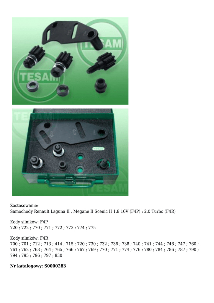 Zastosowanie: Samochody Renault Laguna II , Megane II Scenic II 1,8 16V (F4P) : 2,0 Turbo (F4R) Kody silników: F4P 720 ; 722 ; 770 ; 771 ; 772 ; 773 ; 774 ; 775 Kody silników: F4R 700 ; 701 ; 712 ; 713 ; 414 ; 715 ; 720 ; 730 ; 732 ; 736 ; 738 ; 740 ; 741 ; 744 ; 746 ; 747 ; 760 ; 761 ; 762 ; 763 ; 764 ; 765 ; 766 ; 767 ; 769 ; 770 ; 771 ; 774 ; 776 ; 780 ; 784 ; 786 ; 787 ; 790 ; 794 ; 795 ; 796 ; 797 ; 830 Nr katalogowy: S0000283