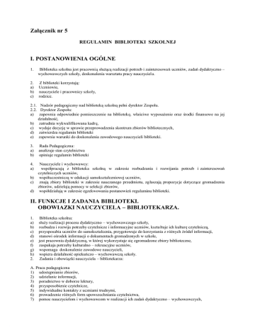 Załącznik nr 5 I. POSTANOWIENIA OGÓLNE II. FUNKCJE I