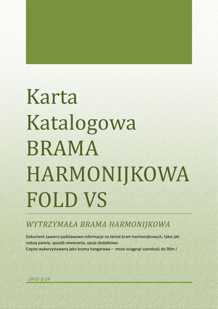 Karta Katalogowa BRAMA HARMONIJKOWA FOLD VS