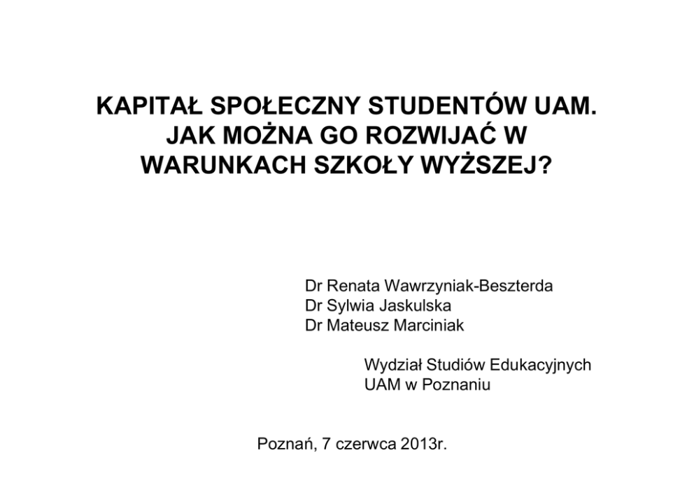 kapitał społeczny studentów uam. jak można go rozwijać w