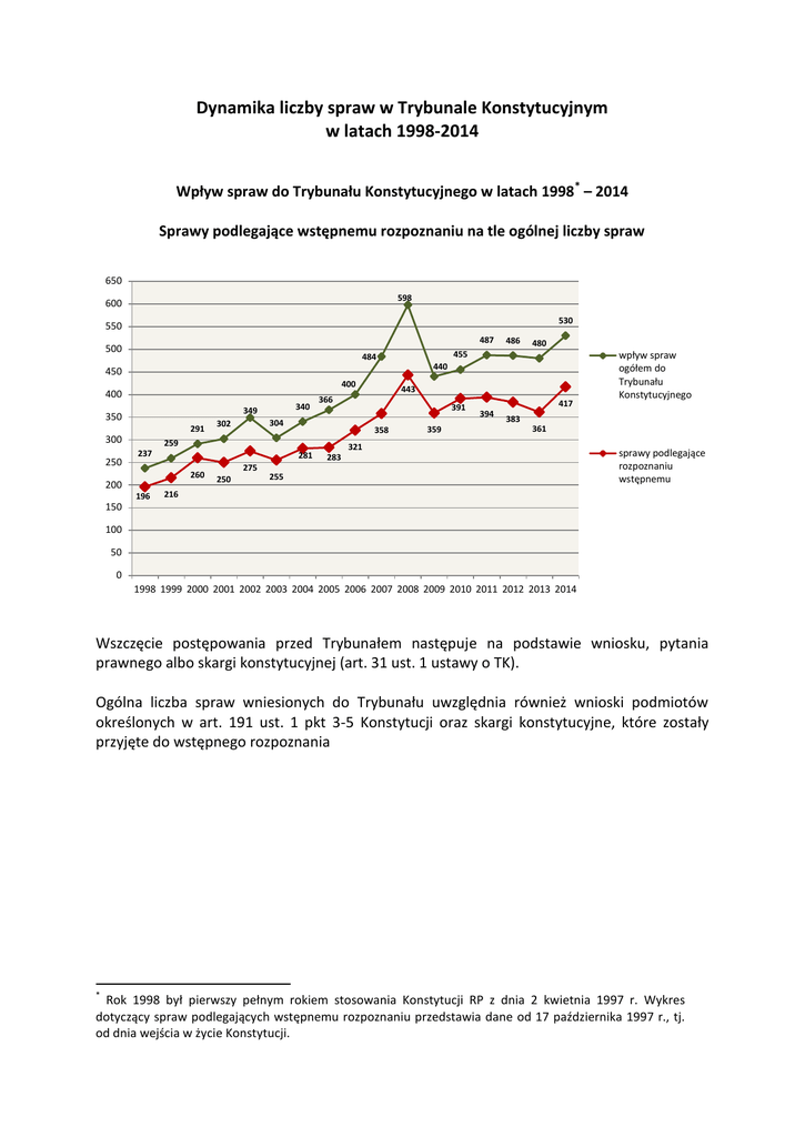 Dynamika liczby spraw w Trybunale Konstytucyjnym w latach 1998