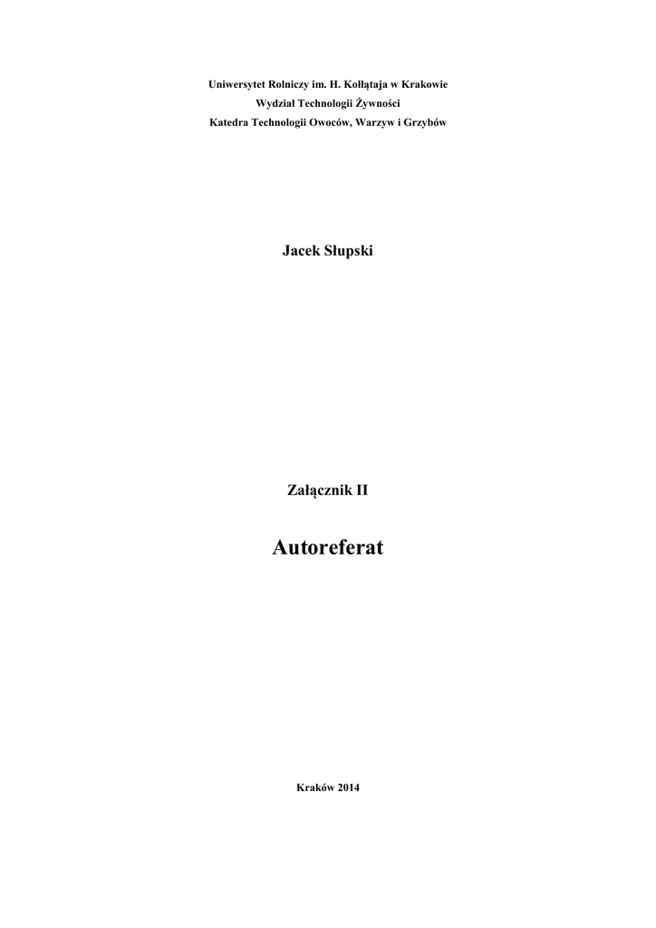Autoreferat - Wydział Technologii Żywności