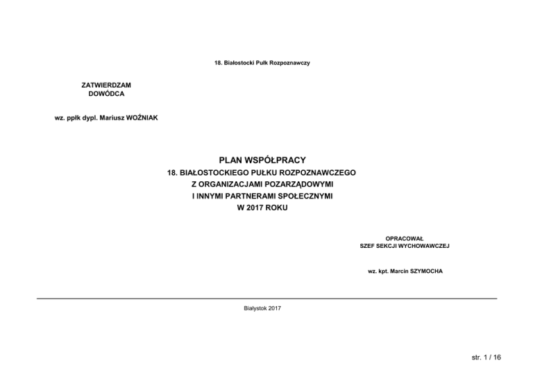 plan współpracy - 18 Białostocki Pułk Rozpoznawczy