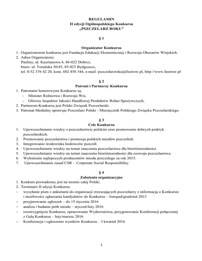 Regulamin Pszczelarz Roku II