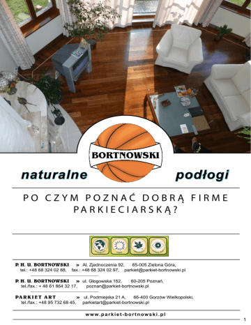 naturalne podłogi Po czym poznać dobrą firme pa r k i e c i a r s k ą ? P. H. U. BORTNOWSKI tel.: +48 68 324 02 88, » Al. Zjednoczenia 92, 65-005 Zielona Góra, fax.: +48 68 324 02 97, [email protected] P. H. U. BORTNOWSKI » ul. Głogowska 152, PA R K I E T A R T » ul. Podmiejska 21 A, 66-400 Gorzów Wielkopolski, [email protected] tel./fax.: + 48 61 864 32 17, tel./fax.: +48 95 732 68 45, 60-205 Poznań, [email protected] w w w. p a r k i e t - b o r t n o w s k i . p l 1 Po czym poznać dobrą firme parkieciarską? Trzeba sobie postawić przede wszystkim pytanie. Czy ma to być rzemieślnik w tradycyjnym tego słowa znaczeniu, czy tylko układacz? Po rozpatrzeniu priorytetów można zobiektywizować dobrego parkieciarza, który sprosta oczekiwaniom większości klientów. Już w całej Europie obserwuje się nagły, niewiarygodny wprost powrót do podłóg naturalnych, jest to spowodowane przykrym doświadczeniem, jakiego doznali użytkownicy podłóg sztucznych. Poza tym udowodniono, że natura uwrażliwia, wpływa na prawidłowe ukształtowanie osobowości i uświadamia nasze miejsce w kosmosie. Nie ma chyba człowieka, który uczyłby swoje dzieci fauny i flory pokazując fototapetę na ścianie zamiast naturalnego lasu. Dobrze, jeśli wybór rzemieślnika uzależnimy od jego podejścia do drewna jako materiału naturalnego, który może potencjalnie układać. Postawione pytanie o wybór rodzaju podłogi ( sztucznej czy naturalnej ? ) powinno być pierwszym kryterium weryfikacji wykonawcy podłóg. W latach 90-tych w erze sztucznych i łatwych w montażu podłóg laminowanych do parkieciarstwa weszło kuchennymi drzwiami wielu pseudowykonawców nastawionych na szybkie i łatwe jak laminaty pieniądze. Tacy ludzie nie są w stanie zrozumieć istoty drewna, tej wyjątkowości i niepowtarzalnych właściwości i cech charakterystycznych dla wielu gatunków, gdyż postrzegają podłogi tylko przez pryzmat zunifikowanych elementów o różnym wyglądzie i kolorze. Podłogi sztuczne nie rozwijają więc rzemiosła parkieciarskiego i jeśli potencjalny wykonawca zapytany o wybór rodzaju podłogi nie jest w stanie określić się jako zdecydowany zwolennik podłóg naturalnych i stwarza wrażenie, że na dobrą sprawę może układać na podłodze wszystko, to na pewno nie jest to parkieciarz. U wielu prawdziwych parkieciarzy zamiłowanie do naturalnych podłóg przybrało wręcz formę pewnej filozofii zawodu, warto więc zapytać o taką filozofię potencjalnego wykonawcę. Nasi pracownicy są starannie dobierani ze względu na stosunek do drewna. Jako ortodoksyjni przeciwnicy sztucznych podłóg na kombinezonach nosimy charakterystyczne hasło KOCHAM DREWNO. Innym kryterium wyboru parkieciarza jest jego odpowiedzialne podejście do materiału, który montuje. Ponieważ cena robocizny jest wielokrotnie niższa od ceny materiału istotnym wydaje się fakt wielkiej dbałości o jakość towaru, który zamierza klient zakupić. Dobry parkieciarz, podobnie jak czyni to nasza firma, sam sprzedaje parkiet swoim klientom, lub doradza gdzie można nabyć towar o dobrych parametrach. Zobaczmy! Te bezduszne, ale żyjące drewniane elementy, te złe i dobre z pozoru, kupione gdziekolwiek, są takie same, ale wcale nie muszą być meblem w domu klienta. Przysłowiowy „Kowalski” nie jest w stanie sam rozpoznać jakości materiału, poziomu wilgotności drewna, sposobu suszenia i technologii odprężania. Na dobrą sprawę do suszarni można wsadzić drewno jeszcze z liśćmi i szybko wysuszyć do niskiej wilgotności, ale potem wystąpią pęknięcia wewnętrzne, które uwidaczniają się na podłodze dopiero po kilku miesiącach wraz z wypaczeniami i szczelinami. Z takiego parkietu, chociaż suchy, nie będzie dobrej posadzki drewnianej, ale zapewne będzie to tańsze rozwiązanie. No właśnie tańsze, ale nie darmowe. Bardzo rzadko klient jest świadom, że drewno powinno być pozyskiwane w lasach zawsze zimą. Pocięte we fryzach i sztaplowane musi być sezonowane kilka miesięcy w odpowiednio przewiewnych miejscach eliminujących rozwój grzybów. Z tego względu nie kupuje się parkietów w marketach i dużych sklepach budowlanych, gdzie olbrzymia presja na niską promocyjną cenę zachęca dostawców na ograniczanie kosztów produkcji i upraszczaniu procesów technologicznych. Poza tym, często sprzedaż parkietów w takich miejscach jest anonimowa. Bardzo ważne jest też przechowywanie parkietów. Zimą i wiosną jest bardzo dużo towarów oferowanych z zimnych blaszanych magazynów. Drewno kupowane przez klienta jest zawilgocone z powodu niewłaściwych warunków przechowywania i kondensacji pary wodnej. Ono leży razem z cegłami i dachówką, a przecież potrzebuje specjalnej troski. W przeciwieństwie do innych zadbaliśmy, aby nasze magazyny były centralnie ogrzewane i dodatkowo całorocznie monitorujemy poziom wilgotności powietrza. Podobnie jest z zakupem chemii do parkietów. Najlepiej, jeśli rzemieślnik przejmie inicjatywę 2 doboru kleju i lakieru. Na rynku jest wiele rodzajów klejów i dobiera się je ze względu na rodzaj podłoża i gatunku drewna. Dobry rzemieślnik wykazuje się również pewna metodyka pracy. Powinien przed rozpoczęciem prac wykonać pomiary poziomu wilgotności w powietrzu i podłożu oraz dokonać analizy wytrzymałości jastrychu. Taki zabieg ma na celu unikniecie błędu układania suchego parkietu w niesprzyjających warunkach. A więc, powinien posiadają dobry profesjonalny sprzęt, również pomiarowy, który w połączeniu z fachowością i doświadczeniem nadaje posadzce drewnianej nową europejską jakość. Dla uzyskania dobrej jakości firma PHU BORTNOWSKI pracuje od wielu lat na takich nowoczesnych maszynach a ostatnio chcąc odróżnić się od podwórkowej konkurencji jakością, park maszynowy w naszej firmie został gruntownie odmłodzony i znacznie poszerzony. Kryteriów oceny dobrego parkieciarza jest znacznie więcej. To