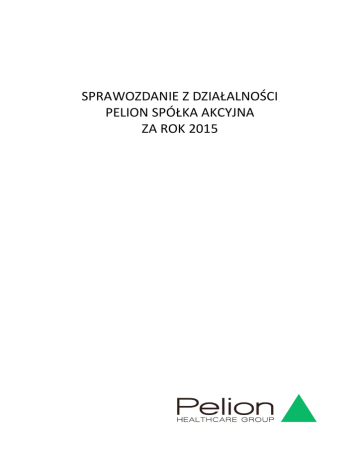 SPRAWOZDANIE Z DZIAŁALNOŚCI PELION SPÓŁKA AKCYJNA ZA ROK 2015 Pelion S.A. SA-R 2015 Spis treści Strona 1. Charakterystyka Spółki ................................................................................................ 2 2. Analiza wyniku finansowego ....................................................................................... 2 3. Analiza sytuacji majątkowej i finansowej.................................................................... 5 4. Inwestycje i rozwój ...................................................................................................... 7 5. Zarządzanie ryzykiem .................................................................................................. 8 6. Zatrudnienie .............................................................................................................. 10 7. Zdarzenia istotne w roku 2015 .................................................................................. 11 8. Oświadczenie o stosowaniu zasad ładu korporacyjnego .......................................... 12 9. Społeczna odpowiedzialność biznesu ....................................................................... 21 10. Dodatkowe informacje .............................................................................................. 22 11. Oświadczenia Członków Zarządu .............................................................................. 25 Komisja Nadzoru Finansowego -1- Pelion S.A. SA-R 2015 1. Charakterystyka Spółki Przedmiot działalności i organizacja Spółki Spółka Pelion S.A. jest spółką holdingową, która koordynuje działalność podmiotów wchodzących w skład Grupy Kapitałowej Pelion. Grupa Pelion działa na rynku ochrony zdrowia i w szczególności jest obecna we wszystkich kanałach dystrybucji farmaceutycznej. Spółki Grupy Kapitałowej funkcjonują w ramach czterech głównych linii biznesowych: • sprzedaż hurtowa, • zaopatrzenie szpitali, • sprzedaż detaliczna, • usługi dla producentów. Zadaniem Pelion S.A. jest przede wszystkim wspieranie i koordynacja spółek zależnych poprzez określanie długofalowej polityki ich rozwoju, koordynacja współpracy pomiędzy poszczególnymi segmentami, standaryzacja procedur centralnych, alokacja zasobów oraz kontrola efektywności ich wykorzystania, organizowanie finansowania działalności spółek Grupy Kapitałowej, wsparcie działalności spółek (np. zarządzanie sprzętem IT, doradztwo w zakresie inwestowania, wsparcie w obszarach HR, PR). W roku 2015 nie nastąpiły zmiany w podstawowych zasadach zarządzania w Pelion S.A.. Z dniem 1 stycznia 2016 r. Urtica sp. z o. nabyła od Pelion S.A. 100 % udziałów spółki Pharmalink. Z tym dniem obie te spółki utworzyły nową linię biznesową - linię zaopatrzenia szpitali i usług logistycznych. 2. Analiza wyniku finansowego 2.1 Analiza wyniku osiągniętego w roku 2015 W roku 2015 Pelion S.A. uzyskała przychody ze sprzedaży na poziomie 73.482 tys. zł, z czego 94,0% to sprzedaż usług do spółek Grupy Pelion. Struktura przychodów kształtowała się następująco: Tabela 1: Struktura przychodów ze sprzedaży Pelion S.A. za lata 2014-2015 tys. zł Przychody ze sprzedaży towarów i materiałów 2014 Udział % 2015 Udział % 1.552 2,1% 0 0,0% Przychody ze sprzedaży produktów i usług 70.867 97,9% 73.482 100,0% Przychody ze sprzedaży ogółem 72.419 100,0% 73.482 100,0% - od jednostek powiązanych 68.192 94,2% 69.081 94,0% W roku 2015 na przychody ze sprzedaży usług składały się głównie usługi z tytułu wynajmu środków trwałych (51,5% przychodów z tytułu usług), usługi doradcze i z tytułu umów o współpracę (38,5%). Strata brutto ze sprzedaży wyniosła 542 tys. zł. Koszty sprzedaży i ogólnego zarządu wyniosły 6.023 tys. zł. Wskaźnik ww. kosztów ukształtował się na poziomie 8,2%. Wskaźnik kosztów = (koszty sprzedaży + koszty ogólnego zarządu) / przychody ze sprzedaży Komisja Nadzoru Finansowego -2- Pelion S.A. SA-R 2015 W 2015 roku Pelion S.A. uzyskała ujemne saldo pozostałych przychodów i kosztów operacyjnych, które pomniejszyło wynik operacyjny o 2.228 tys. zł., w tym odpisy aktualizujące wartość zapasów wynosiły 1 880 tys. zł. Spółka poniosła stratę na działalności operacyjnej w wysokości 8.793 tys. zł. W prezentowanym okresie Pelion S.A. zrealizowała następujące wielkości przychodów i kosztów finansowych: • przychody finansowe 129.456 tys. zł, • koszty finansowe 9.030 tys. zł. Na przychody finansowe składały się głównie: dywidendy i udziały w zyskach 109.357 tys. zł (w 2014 r. 59.554 tys. zł), otrzymane odsetki 9.686 tys. zł (w 2014 r. 5.344 tys. zł) oraz zysk ze zbycia inwestycji w wysokości 9.465 tys. zł. Zysk z inwestycji dotyczy sprzedaży udziałów w spółkach Pharmalink Sp. z o.o. oraz Pharmapoint S.A. do innych spółek Grupy Pelion. Tabela 2: Saldo przychodów i kosztów finansowych Pelion S.A. w latach 2014 -2015 (tys. zł) 2014 2015 Przychody finansowe Koszty finansowe 239.290 12.069 129.456 9.030 Saldo przychodów i kosztów finansowych 227.221 120.426 Informacja o instrumentach finansowych Spółki znajduje się w nocie nr 1 Dodatkowych Not Objaśniających do sprawozdania finansowego. W 2015 roku Pelion S.A. osiągnęła zysk brutto w wysokości 111.633 tys. zł oraz zysk netto 110.896 tys. zł. Wskaźniki rentowności kształtowały się następująco: • wskaźnik rentowności brutto 151,9 %, • wskaźnik rentowności netto 150,9 %. Poniżej przedstawiono podstawowe wielkości rachunku zysków i strat. Tabela 3: Podstawowe wielkości rachunku zysków i strat Pelion S.A. w latach 2014-2015 (tys. zł) Wielkość 2014 Zmiana 2015 /2014 2015 Przychody ze sprzedaży Zysk brutto ze sprzedaży Koszty sprzedaży Koszty ogólnego zarządu 72 419 7 281 1 496 4 615 73 482 -542 1 994 4 029 1,5% 33,3% -12,7% Razem koszty sprzedaży i koszty ogólnego zarządu 6 111 6 023 -1,4% Saldo po