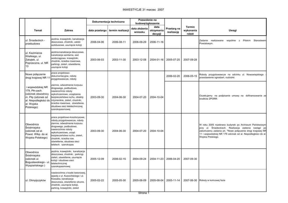 INWESTYCJE 31 marzec 2007 Strona 1