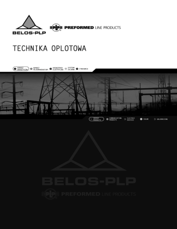 Spis treści · Wstęp 2 · Rekomendacja PSE 3 · Osprzęt oplotowy cz.1 5 · Instrukcja montażu osprzętu oplotowego 21 · Osprzęt oplotowy cz.2 39 Wyniki badań 49 Wstęp Wychodząc naprzeciw wysokim wymaganiom rynku, jakim jest rynek energetyczny w Polsce, pragniemy przedstawić Państwu nowoczesne rozwiązania światowego i uznanego producenta jakim jest Performed Line Product, którego częścią jest nasza firma. Oferujemy Państwu szeroką gamę rozwiązań do oplotowego mocowania przewodów elektroenergetycznych w skład których wchodzą: Oploty ochronne Złączki oplotowe Uchwyty oplotowe Stosowanie nowoczesnych rozwiązań oplotowych w odróżnieniu od dotychczasowych, tradycyjnych rozwiązań zaprasowywanych lub śrubowych przynosi wiele korzyści i jest w pełni uzasadnione z ekonomicznego punktu widzenia, jednocześnie przyczynia się do poprawy bezpieczeństwa istniejącej linii. Osprzęt oplotowy nie wymaga stosowania specjalistycznych narzędzi co redukuje koszta związane z koniecznością zakupu dedykowanych narzędzi. Montaż oplotu ochronnego jest bardzo prosty i szybki co jest niezbędne zwłaszcza w czasie usuwania awarii. Dzięki swojej prostocie użycia nie wymaga zaangażowania wieloosobowych ekip monterskich. Osprzęt oplotowy może być powszechnie od ponad 60 lat stosowany we wszystkich rodzajach linii na Terenie naszego kraju. Osprzęt oplotowy spełnia najwyższe standardy, czego dowodem jest jego powszechne zastosowanie w krajach takich jak Stany Zjednoczone czy Wielka Brytania. W Polsce zostało to potwierdzone certyfikatem Instytutu Energetyki. W perspektywie czasu zalecamy odejście od pewnych tradycyjnych rozwiązań mocowania i naprawy przewodów na rzecz nowych oplotowych. Stosowanie osprzętu oplotowego w opinii naszych klientów posiada szereg zalet co uzasadnia ich powszechne używanie. Oferujemy szkolenia z zakresu doboru i stosowania osprzętu zarówno w siedzibie naszej firmy jak również w siedzibie naszych klientów. 2 Osprzęt oplotowy Osprzęt oplotowy 3 Osprzęt oplotowy cz.1 Osprzęt oplotowy Helical fittings 5 BARWNY ZNACZNIK ROZMIARU PRZEWODU Osprzęt oplotowy 7 ETYKIETA INFORMACYJNA UCHWYTU INFORMATION LABEL NOEOPRENOWA NAKŁADKA OSŁONOWA NA PRZEWÓD W KOMPLECIE BARWNY ZNACZNIK ROZMIARU PRZEWODU COLOUR CODE BARWNY ZNACZNIK ROZMIARU PRZEWODU COLOUR CODE ETYKIETA INFORMACYJNA UCHWYTU INFORMATION LABEL NOEOPRENOWA NAKŁADKA OSŁONOWA NA PRZEWÓD W KOMPLECIE 8 Osprzęt oplotowy BARWNY ZNACZNIK ROZMIARU PRZEWODU COLOUR CODE ETYKIETA INFORMACYJNA UCHWYTU INFORMATION LABEL NOEOPRENOWA NAKŁADKA OSŁONOWA NA PRZEWÓD W KOMPLECIE BARWNY ZNACZNIK ROZMIARU PRZEWODU COLOUR CODE umożliwia realizacje 1, 2 i 3 stopnia obostrzenia Osprzęt oplotowy 9 10 Osprzęt oplotowy LINE SPLICE Osprzęt oplotowy 11 wykonane 12 Osprzęt oplotowy wykonane dedykowanej Osprzęt oplotowy 13 wykonane 14 Osprzęt oplotowy * * * wykonane * 100% uszkodzenia dla przewodów: AFL-6 35 AFL-6 50 AFL-6 70 przęśle Osprzęt oplotowy 15 wykonane przęśle 16 Osprzęt oplotowy Produkt na specjalne zamówienie Produkt na specjalne zamówienie Osprzęt oplotowy 17 18 Osprzęt oplotowy Osprzęt oplotowy 19 20 Osprzęt oplotowy Instrukcja montażu osprzętu oplotowego Instrukcja montażu osprzętu oplotowego 21 INFORMACJE OGÓLNE Wstęp Uchwyty oplotowe prefabrykowane produkcji Preformed Line Products (PLP) przeznaczone są do mocowania przewodów gołych stalowo-aluminiowych AFL do izolatorów liniowych stojących i odciągowych w napowietrznych liniach elektroenergetycznych średnich napięć (SN). W przeciwieństwie do drutu wiązałkowego, rozluźniającego się po pewnym okresie eksploatacji, uchwyty oplotowe dążą do ciągłego zacieśniania się na przewodzie. Uchwyty dają mocowanie rozłożone na całej powierzchni styku w przeciwieństwie do mocowania zaciskowo-punktowego, a także podparcie przewodu na wyjściu z obu stron izolatora na całej długości spirali uchwytu. Daje to ochronę przed uszkodzeniami przewodów podczas występujących drgań eolskich. Uchwyty wykonano z wysokiej jakości sprężystych drutów stalowych platerowanych aluminium. Gwarantuje to dużą wytrzymałość podczas długoletniej pracy na stanowiskach izolatorowych oraz trwałość na styku uchwyt-przewód, wyklucza także niepożądane zjawiska elektryczne. Neoprenowa nakładka osłonowa na przewód, w którą wyposażone są wszystkie uchwyty przelotowe chroni przewód przed zużyciem ścierno-korozyjnym, które często występuje w przypadku mocowania drutem wiązałkowym oraz w podobny sposób osłania powierzchnię izolatora przed ścieraniem i wnikaniem wilgoci. Uchwyty oplotowe do linii SN są doskonałym sposobem na rozwiązanie problemów ze stosowanym obecnie mocowaniem przewodów do izolatorów drutem wiązałkowym formowanym ręcznie lub mocowaniem zaciskowym. Montaż Montaż uchwytów oplotowych SN nie wymaga użycia specjalnych narzędzi. Wyjątkiem jest montaż uchwytów w technologii PPN (prac pod napięciem), w którym wykorzystuje się specjalne końcówki zakładane na drążki izolacyjne. W niniejszej instrukcji nie uwzględniono prac PPN. W celu uzyskania informacji na ten temat zapraszamy na stronę www.preformed.com lub prosimy o kontakt z BELOS-PLP. Podczas montażu osprzętu oplotowego przedstawionego w tej instrukcji wykorzystujemy podstawowe środki ochrony osobistej stosowane podczas prac na liniach elektroenergetycznych. Uchwyty na stanowiskach izolatorowych montujemy ręcznie, dlatego zalecamy używanie podczas montażu rękawic oraz okularów ochronnych. Przed przystąpieniem do montażu prosimy również o zapoznanie się ze szczególnymi aspektami bezpieczeństwa znajdującymi się na odwrotnej stronie. Szkolenia Niniejsza instrukcja montażu została wykonana z wykorzystaniem linii szkoleniowej na terenie BELOS-PLP S.A. Zapraszamy również na nasze linie szkoleniowe SN zbudowane w technologii uchwytów oplotowych na terenie poligonów szkoleniowych: Zost