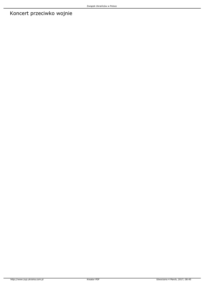 Związek Ukraińców w Polsce Koncert przeciwko wojnie http://www.zup.ukraina.com.pl Kreator PDF Utworzono 4 March, 2017, 08:45