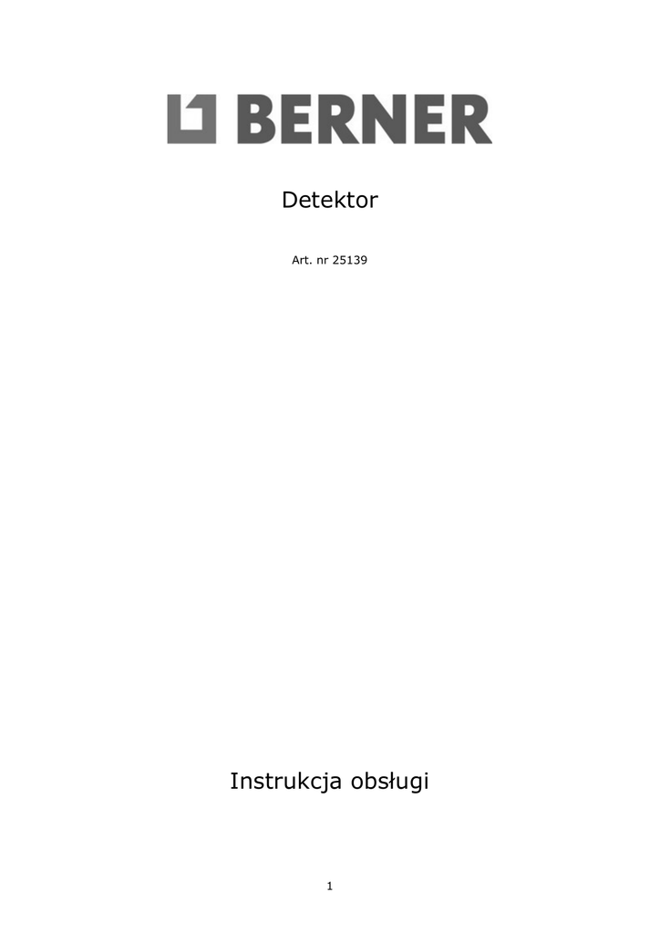 Detektor Art. nr 25139 Instrukcja obsługi 1 Opis funkcjonowania Aby efektywnie i optymalnie pracować z urządzeniem pomiarowym, należy przeczytać w całości instrukcję obsługi i wskazówki dotyczące pracy z urządzeniem oraz ich dokładnie przestrzegać. PROSIMY ZACHOWAĆ I STARANNIE PRZECHOWYWAĆ NINIEJSZE WSKAZÓWKI. Proszę rozłożyć stronę z graficznym przedstawieniem narzędzia pomiarowego i pozostawić ją rozłożoną podczas czytania instrukcji obsługi. Użycie zgodne z przeznaczeniem Urządzenie pomiarowe przeznaczone jest do szukania metali (żelaza i metali nieżelaznych, np, żelazo zbrojeniowe), belek drewnianych, a także będących pod napięciem przewodów w ścianach, stropach i podłogach. Przedstawione graficznie komponenty Numeracja przedstawionych komponentów odnosi się do schematu narzędzia pomiarowego, znajdującego się na stronie graficznej: 1 Dioda (w kształcie pierścienia) 2 Otwór zaznaczania 3 Monitor 4 Przycisk „ZOOM“ 5 Przycisk szukania drewna 6 Przycisk szukania metalu 7 Włącznik/wyłącznik „on/off“ 8 Podkładka filcowa 9 Zakres czujnika 10 Pokrywa wnęki na baterie 11 Ołówek do zaznaczania (do wyjmowania) 12 Blokada pokrywy wnęki na baterie Elementy wskaźników a Wskaźnik przewodów będących pod napięciem b Wskaźnik funkcji szukania drewna c Wskaźnik funkcji szukania metalu d Wskaźnik funkcji „ZOOM“ e Wskaźnik pomiaru „ZOOM“ f Wskaźnik pomiaru g Wskaźnik kalibrowania „AutoCal“ h Wskaźnik metali magnetycznych i Wskaźnik metali niemagnetycznych j Wskaźnik wyłączonego sygnału dźwiękowego k Wskaźnik naładowania baterii 2 3 Dane techniczne Praca urządzenia Wkładanie/wymiana baterii Należy używać wyłącznie baterii lub akumulatorów alkaliczno-manganowych. W celu otwarcia pokrywy wnęki na baterie 10 należy przesunąć blokadę 12 w kierunku strzałki i otworzyć pokrywkę do góry. Włożyć dostarczone w dostawie baterie. Należy przy tym zwrócić uwagę na zachowanie prawidłowej biegunowości zgodnie z przedstawionym po wewnętrznej stronie wnęki schematem. W przypadku, gdy wskaźnik baterii k świeci się na wyświetlaczu, to przy użyciu baterii alkaliczno-manganowych można wykonywać pomiar jeszcze około 1 godziny (przy akumulatorach okres używania jest krótszy). W przypadku, gdy wskaźnik k, miga, to możliwe jest jeszcze wykonywanie pomiarów przez ok. 10 minut. Gdy migają wskaźnik baterii k i pierścień świetlny 1 (na czerwono), to wykonywanie pomiarów nie jest więcej możliwe i należy wymienić baterie lub akumulator. Należy wyjąć baterię z narzędzia pomiarowego, gdy będzie ono przez dłuższy okres czasu nieużywane. Bateria może podczas dłuższego czasu składowania korodować lub wyładować się samoistnie. Dane techniczne maks. głębokość pomiaru*: Metale żelazne Metale nieżelazne (miedź) Przewody miedziane (pod napięciem)** Drewno Automatyczne wyłączanie po ok. 5 min Temperatura pracy Temperatura przechowywania Bateria Akumulator Czas pracy (baterii alkaliczno-manganowych) Ciężar odpowiednio do EPTA-Procedure 01/2003 100 mm 80 mm 50 mm 20 mm –10 ˚C ... +50 ˚C –20 ˚C ... +70 ˚C 1 x 9 V 6LR61 1 x 9 V 6F22 ok. 6 h 0,24 kg * w zależności od materiału i wielkości obiektów, jak i materiału i stanu podłoża ** mniejsza głębokość pomiarowa przy przewodach nie będących pod napięciem Należy zwracać uwagę na numer katalogowy na tabliczce znamionowej Państwa narzędzia pomiarowego, poszczególne nazwy handlowe pojedynczych narzędzi pomiarowych mogą się różnić. 4 Włączenie Narzędzie pomiarowe należy chronić napromieniowaniem słonecznym. przed wilgocią i bezpośrednim Włączanie/wyłączanie Przed włączeniem urządzenia pomiarowego należy upewnić się, czy zakres czujnika 9 nie jest wilgotny. W danym przypadku należy wytrzeć urządzenie pomiarowe na sucho ściereczką. W przypadku, gdy urządzenie pomiarowe wystawione było na duże zmiany temperatury, należy przed włączeniem wyrównać temperaturę. W celu włączenia narzędzia pomiarowego należy przycisnąć dowolny przycisk. Gdy urządzenie pomiarowe włączone zostanie przyciskiem szukania drewna 5 lub przyciskiem szukania metalu 6, to znajduje się ono natychmiast w odpowiednim trybie detekcji. Gdy urządzenie pomiarowe włączone zostanie włącznikiem/wyłącznikiem 7 lub przyciskiem „ZOOM“ 4, to znajduje się ono w tym trybie, w którym było ono ostatnio używane. Po krótkim teście automatycznym narzędzie pomiarowe jest gotowe do pracy. W przypadku, gdy narzędzie pomiarowe znajduje się w funkcji szukanie obiektów metalowych, to gotowość do pracy zostaje wskazana haczykiem za wskaźnikiem kalibrowania „AutoCal“ g. W celu wyłączenia urządzenia pomiarowego należy nacisnąć włącznik/wyłącznik 7. Gdy przez ok. 5 min nie zostanie naciśnięty żaden przycisk urządzenia pomiarowego, to urządzenie pomiarowe wyłącza się automatycznie w celu ochrony baterii. Rodzaje pracy Urządzenie pomiarowe wykrywa obiekty znajdujące się pod zakresem czujnika 9. Szukanie obiektów metalowych W celu szukania obiektów metalowych należy nacisnąć przycisk szukania metalu 6. Na wyświetlaczu ukazuje się symbol c szukania metalu, pierścień 1 świeci się na zielono. Nasadzić urządzenie pomiarowe na powierzchnię do badania i poruszać po bokach. Gdy urządzenie pomiarowe zbliża się do obiektu metalowego, to wychylenie wskaźnika f zwiększa się, gdy urządzenie oddala się od obiektu, to wychylenie wskaźnika zmniejsza się. Na pozycji maksymalnego wychylenia znajduje się obiekt metalowy pod środkiem czujnika (pod otworem zaznaczania 2). Tak długo, jak długo urządzenie pomiarowe znajduje się nad obiektem metalowym, pierścień świetlny 1 świeci się na czerwono i rozbrzmiewa stały dźwięk. By dokładniej sprecyzować położenie obiektu należy wcisnąć przycisk „ZOOM“ 4 i przytrzymać go w tej pozycji, trzykrotnie (3x)