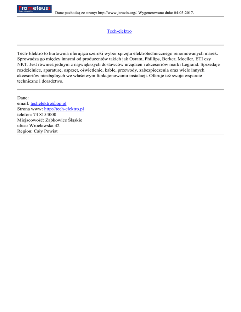 Tech-elektro Tech-Elektro to hurtownia oferująca szeroki