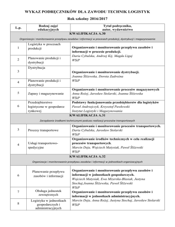 WYKAZ PODRĘCZNIKÓW DLA ZAWODU TECHNIK LOGISTYK Rok