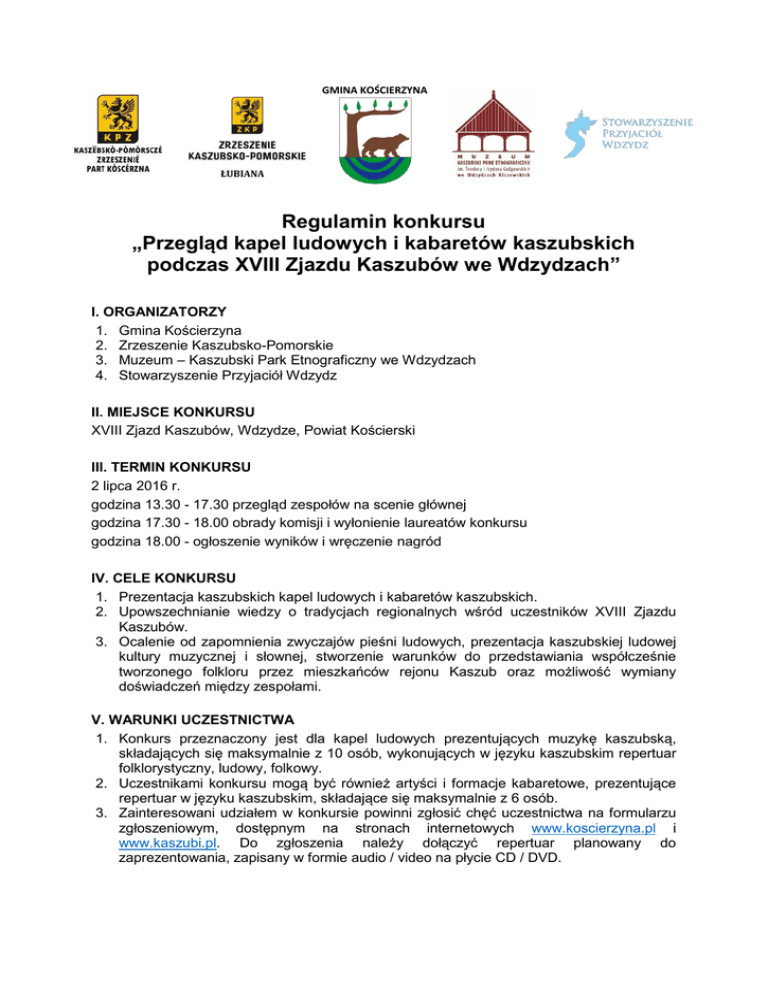 Regulamin - konkurs kapel i kabaretów kaszubskich