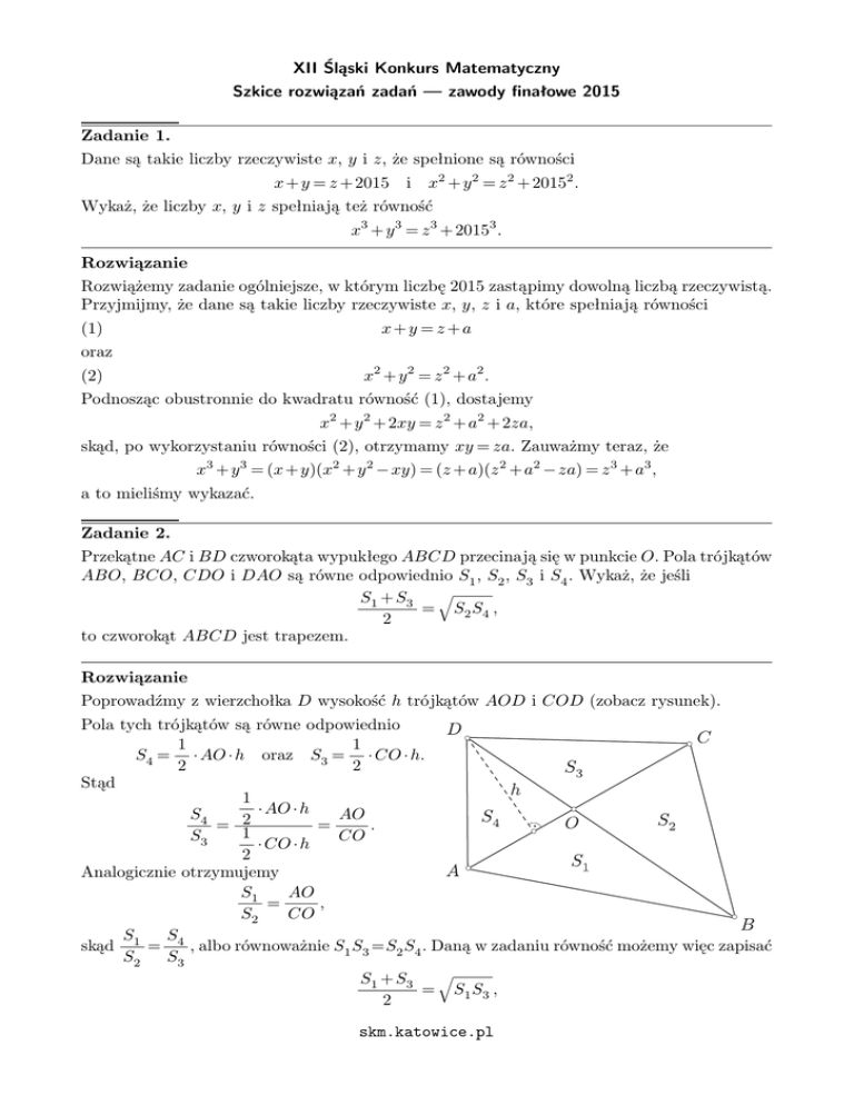 XII Śląski Konkurs Matematyczny Szkice rozwiązań zadań