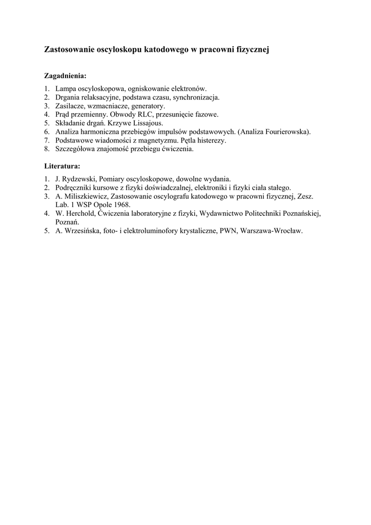 Zastosowanie oscyloskopu katodowego w pracowni fizycznej