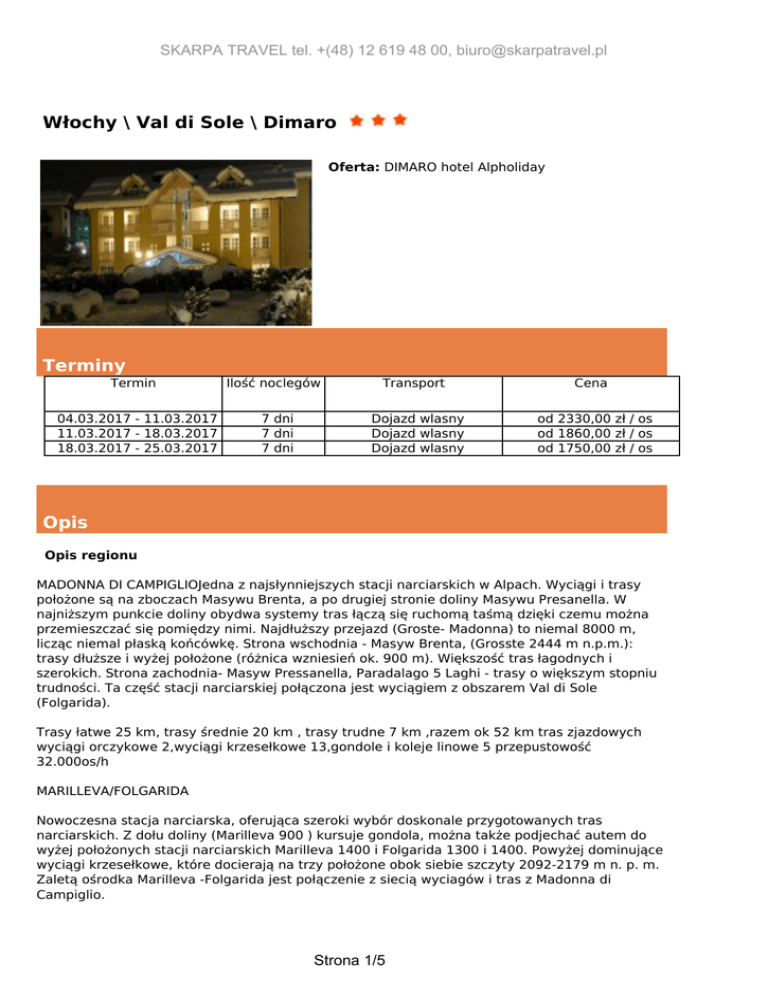 Włochy \ Val di Sole \ Dimaro Terminy Opis