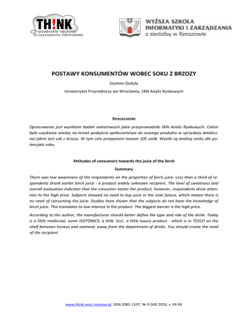POSTAWY KONSUMENTÓW WOBEC SOKU Z BRZOZY