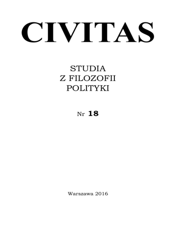 CIVITAS STUDIA Z FILOZOFII POLITYKI Nr 18 Warszawa 2016 Spis treści Słowo wstępne 11 W kręgu myśli Edmunda Wnuk-Lipińskiego STANISŁAW MOCEK Od schizofrenii społecznej do światów równoległych. Przyczynek do autobiografii subiektywnej Edmunda Wnuk-Lipińskiego (1944–2015) 17 BOGDAN W. MACH, ALEKSANDER MANTERYS Trzy spojrzenia na kultury polityczne, kulturę obywatelską i obywatelstwo 29 Kultura polityczna BARBARA A. MARKIEWICZ Kultura polityczna: czy tego można się nauczyć? 53 PATRYK DANIELEWICZ Pojęcie „kultury politycznej” w wybranych współczesnych teoriach politologicznych a perspektywa filozofii polityki 75 AGNIESZKA NOGAL Filozoficzne ujęcie kultury politycznej 91 KRZYSZTOF PRZYBYSZEWSKI Kultura obywatelska w społeczeństwie konsumpcyjnym 110 ANNA I. WÓJCIK Konfucjusz i szkoła nauczycieli ceremonii (Rujia) czyli o chińskiej kulturze politycznej 126 AGNIESZKA KUKLA Wpływ kultury i kapitału społecznego na proces demokratyzacji 148 JUSTYNA MIKLASZEWSKA Wolność słowa a zjawisko propagandy 172 RAFAŁ PROSTAK Sprawiedliwość polityczna a neutralność. Kilka uwag o rozumnej naturze liberalizmu politycznego Johna Rawlsa i Charlesa Larmore’a 188 MARTA TURKOT Poprawność polityczna w liberalnej kulturze politycznej – szansa na porozumienie czy hipokryzja władzy? 220 KATARZYNA BORZYM Kultura polityczna a władza i zarządzanie. Kulturalizm szkoły z Birmingham i koncepcja kultury organizacyjnej 243 Forum DOROTA HALINA KUTYŁA Kultura źródłem polityki. Chasydzka praca Martina Bubera 263 KATARZYNA WEICHERT Krytyczny i polityczny wymiar wyobraźni w filozofii Georgesa Didi-Hubermana 282 DARIA ORZECHOWSKA-SŁOWIKOWSKA Styl polityczny Marine Le Pen. Rodzinna sukcesja 306 JULIA WREDE Protest polityczny w globalizacji 324 ANNA DZIENKIEWICZ Stowarzyszenie „Memoriał” w Rosji a polityka historyczna państwa 344 Recenzje MICHAŁ RZECZYCKI Legalne bezprawie (Carl Schmitt: Legalność i prawomocność) 363 TOMASZ HERBICH Perspektywy badań poświęconych rosyjskiej filozofii religijnej podczas I wojny światowej (Michał Bohun: Oczyszczenie przez burzę. Włodzimierz Ern i moskiewscy neosłowianofile wobec pierwszej wojny światowej) 370 Abstracts 389