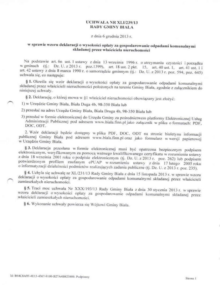 G OPIATA ZA GOSPODAROWANIE ODRDAMI KOMUNALNVMI