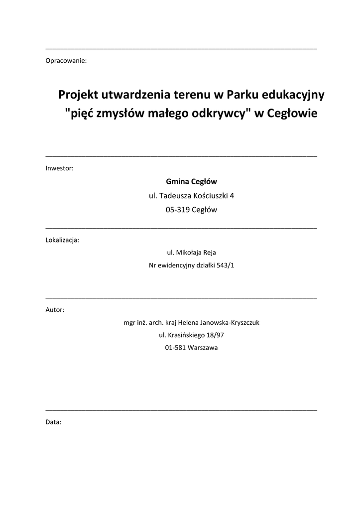 Projekt utwardzenia terenu w Parku edukacyjny "pięć zmysłów