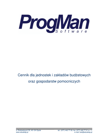 Cennik dla jednostek i zakładów budżetowych oraz gospodarstw pomocniczych ul. Budowlanych 52, 45-124 Opole www.edusklep.pl tel.: (077) 442 77 20, fax: (077) 442 77 21 w. 11 e-mail: [email protected] CENNIK ważny do 31.12.2008 Systemy dla administracji budżetowej: dla Windows© 98 / ME / NT / 2000 / XP Programy przeznaczone dla jednostek, zakładów budżetowych i gospodarstw pomocniczych: Finanse netto brutto 2 090 2 549,80 Program został specjalnie zaprojektowany dla jednostek, zakładów budżetowych oraz innych jednostek sektora finansów publicznych w celu prowadzenia pełnej księgowości oraz obsługi sprawozdawczości budżetowej i finansowej. Program uwzględnia specyfikę rachunkowości budżetowej, zawiera kartotekę paragrafów oraz kont. Umożliwia dopisywanie, poprawianie oraz księgowanie dokumentów. Pracę z programem można zacząć w każdym dowolnym momencie roku obrachunkowego. System zawiera wydruki wymagane przepisami ustawy o rachunkowości, sprawozdania budżetowe Rb 23, 27, 27S, 28, 28S, 30, 34, N, Z, ST oraz bilans, rachunek zysków i strat, zestawienie zmian w funduszu jednostki. Kadry 1 160 1 415,20 Program umożliwia pełną ewidencję danych o pracowniku, przeliczanie stażu na podstawie wpisanego przebiegu pracy oraz eksport formularzy zgłoszeniowych do programu Płatnik. W programie istnieje możliwość wydruku kilkudziesięciu zdefiniowanych druczków kadrowych i łatwej zmiany podstaw prawnych; system zawiera gotowe zestawienia i generator wydruków. Płace 2 190 2 671,80 System nalicza i ewidencjonuje płace pracowników z każdego miesiąca dla następujących list płac: składników płac, potrąceń, zasiłków, składek ZUS i danych dodatkowych. Eksportuje dane do programu Płatnik i automatycznie przenosi główne informacje o wypłacie na następny miesiąc. Tworzy wszystkie potrzebne wydruki (listy płac, odcinki dla pracowników, karty wynagrodzeń, Pity: 4, 11, 40 itd.). Zlecone 380 463,60 Program ewidencjonuje dane osobowe zleceniobiorców i wszelkiego rodzaju wypłaty rozliczane przez PIT 8A i 8B. W systemie można zdefiniować rodzaj wypłaty związany z różnymi sposobami naliczania podatku i składek ZUS. Przelewy 120 146,40 Program obejmuje ewidencję przelewów i wpłat. W programie istnieje możliwość wydruku aktualnych formularzy przelewów i wpłat akceptowanych przez wszystkie banki i pocztę. Kasa 640 780,80 Program umożliwia pełną obsługę obrotu gotówkowego w jednostce lub przedsiębiorstwie w zakresie jednej lub wielu kas. W systemie można wykonać następujące operacje kasowe: wpłata, wypłata, pobranie zaliczki, rozliczenie zaliczki, zapłata za fakturę, rachunek. Istnieje możliwość wydrukowania dokumentu KP, KW oraz raportu kasowego. Program zawiera opcję bilansowania kasy oraz wyszukiwania operacji kasowych. Pracę w systemie można rozpocząć w dowolnym momencie. Program współpracuje z modułem Finanse DDJ. Zbiorczy arkusz organizacyjny 2 590 3 159,80 Program przeznaczony jest dla organów prowadzących szkoły. Praca z systemem odbywa się w trzech etapach: zgromadzenie plików z arkuszami szkół, wybranie parametrów zbiorczego arkusza organizacyjnego, wydrukowanie zbiorczego arkusza organizacyjnego z wybranymi parametrami. Zbiorczy Analizator Matur NOWOŚĆ! 3 730 4 550,60 Program Zbiorczy Analizator Matur umożliwia zestawienie i porównanie analiz egzaminów maturalnych dokonywanych w poszczególnych szkołach w programie Analiza Matur. Umożliwia on porównywanie szkół według efektywności szkolnej, efektywności egzaminacyjnej oraz efektywności kształcenia w rozbiciu na arkusze matur podstawowe i rozszerzone oraz bloki przedmiotów: humanistyczny i matematyczno-przyrodniczy. Zestawienia te można dokonywać dla jednej szkoły na przestrzeni lat oraz wszystkich szkół w jednym roku. Umożliwia to śledzenie wyników maturalnych w kolejnych latach. Przygotowywane zestawienia nie są typowymi rankingami szkół, gdyż pokazują wzrost lub spadek wykorzystania potencjału ucznia. Poradnia P-P 1 410 1 720,20 Program przeznaczony jest do obsługi Poradni Psychologiczno – Pedagogicznych. Jest to system ewidencyjno-statystyczny. 2 CENNIK ważny do 31.12.2008 Systemy dla administracji budżetowej: dla Windows 98 / ME / NT / 2000 / XP Programy przeznaczone dla jednostek, zakładów budżetowych i gospodarstw pomocniczych: Fakturowanie netto brutto 640 780,80 Program jest przeznaczony do komputerowego wystawiania faktur VAT, faktur korygujących, rachunków, decyzji, potwierdzenia wniesienia opłaty. Na ich podstawie automatycznie generowany jest rejestr sprzedaży oraz deklaracja VAT 7 / VAT 7K. System zawiera kartotekę kontrahentów, towarów / usług, sprzedaży, wydruków. W programie dostępny jest kalkulator odsetkowy oraz opcja współpracy z drukarką fiskalną i modułem Finanse DDJ. Rejestr VAT + Fakturowanie 1 160 1 415,20 Program umożliwia prowadzenie rejestru sprzedaży, zakupu oraz przygotowanie deklaracji VAT 7 lub VAT 7K na podstawie wystawionych dokumentów sprzedaży oraz wprowadzonych dokumentów zakupu. Istnieje możliwość przygotowania i wydrukowania: faktur VAT, faktur korygujących, rachunków, decyzji, potwierdzenia wniesienia opłaty oraz not korygujących do dokumentów zakupu. Program zawiera kalkulator odsetkowy, opcję współpracy z drukarką fiskalną oraz modułem Finanse DDJ. Rozrachunki + Rejestr VAT + Fakturowanie 1 490 1 817,80 System Rozrachunki umożliwia wystawianie dokumentów sprzedaży: faktur VAT, faktur korygujących, rachunków, decyzji, potwierdzenia wniesienia opłaty oraz prowadzenie ewidencji dokumentów zakupów i wystawiania do nich not korygujących. Na podstawie wystawionych i wprowadzonych dokumentów generowany jest rejestr sprzedaży, zakupu oraz deklaracja Vat7 lub Vat7K. Program umożliwia rozliczanie zapłat z dokumentami sprzedaży, zakupu, nalicza odsetki od zaległości podatkowych i ustawowych. Istnieje możliwość wystawieni