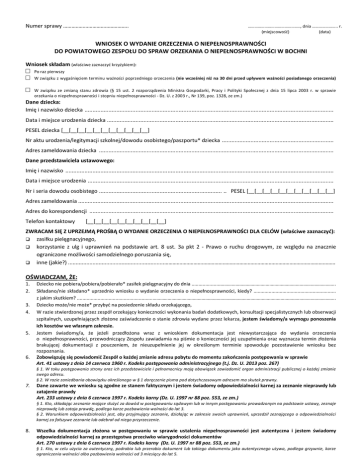 wniosek o wydanie orzeczenia o niepełnosprawności do