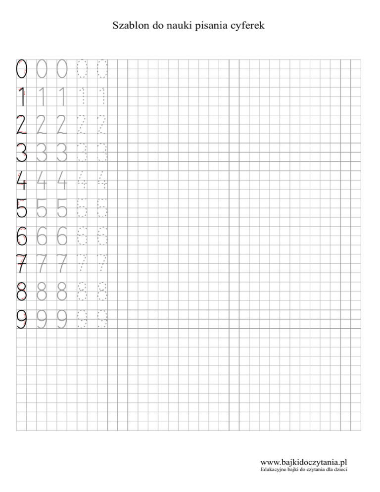 Szablon do nauki pisania cyferek www.bajkidoczytania.pl Edukacyjne bajki do czytania dla dzieci