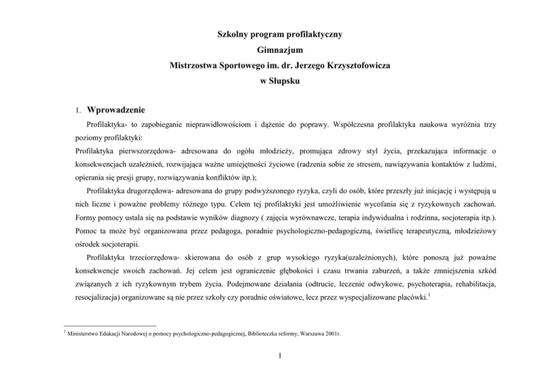 Szkolny program profilaktyczny Gimnazjum Mistrzostwa Sportowego