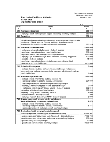 Plan dochodów Miasta Malborka na rok 2008 wg działów oraz źródeł