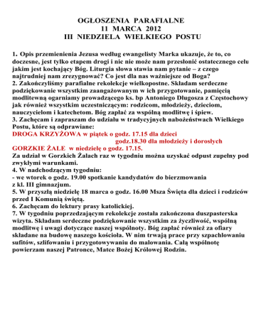 OGŁOSZENIA PARAFIALNE 11 MARCA 2012 III NIEDZIELA