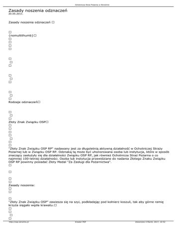 Pożarnej lub w Związku OSP RP. Odznaką tą może być uhonorowana osoba lub instytucja, które w sposób