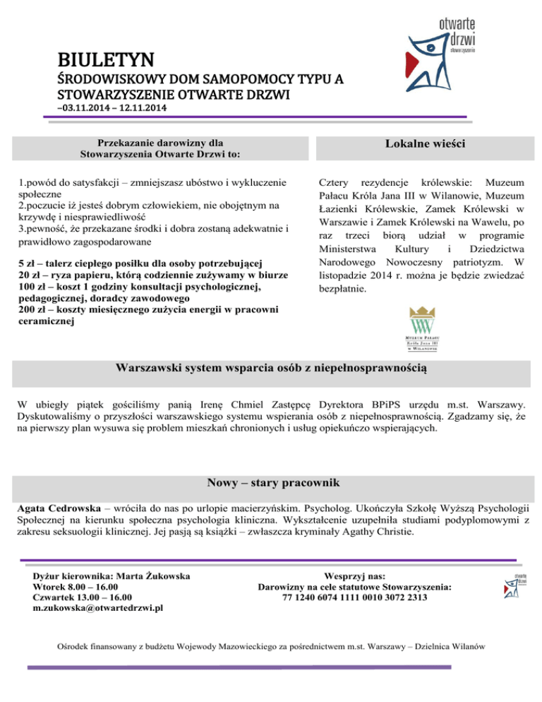 biuletyn - Stowarzyszenie Otwarte Drzwi