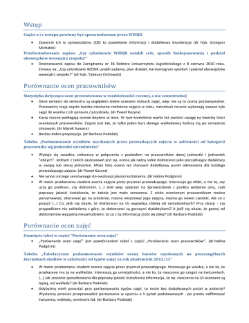 Wstęp Poro wnanie ocen pracowniko w Poro wnanie ocen zajęc