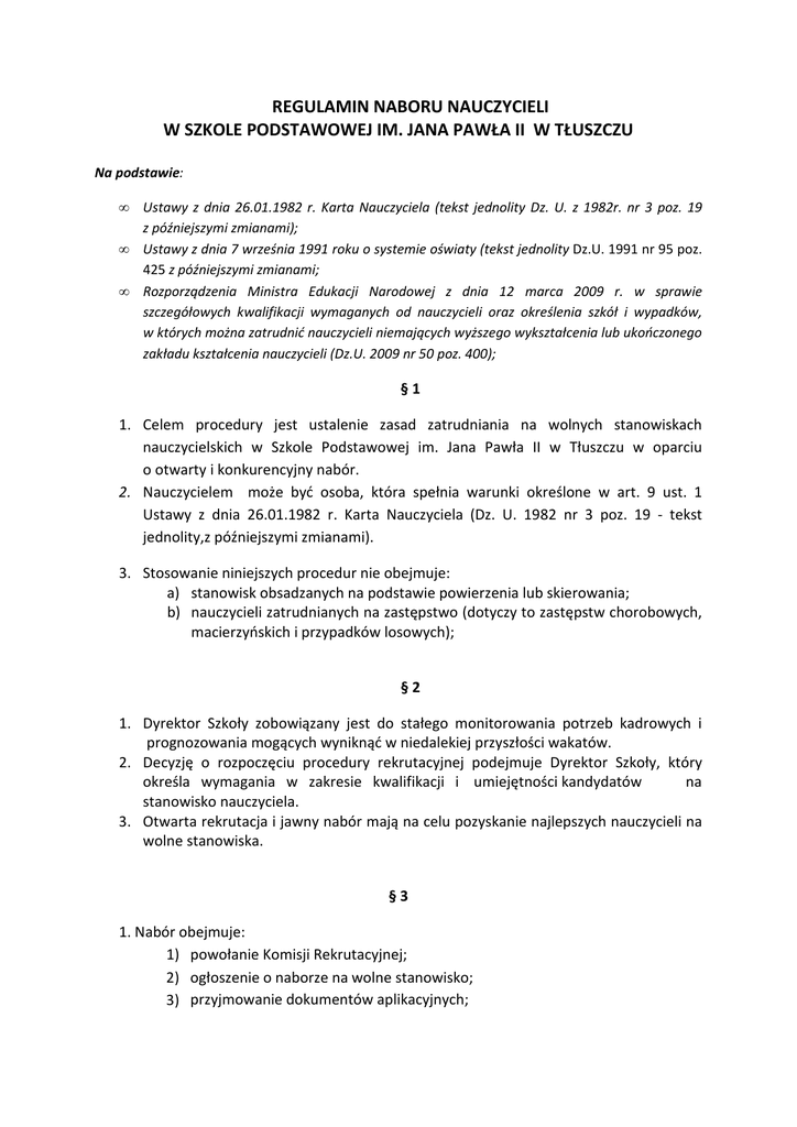 regulamin naboru na wolne stanowiska nauczycieli